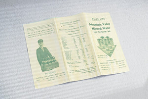 This “sell sheet” from the 1980s would have been used by Mountain Valley distributors to spread the good word about our premium water to potential customers.