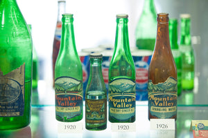 In The Roaring Twenties, as Prohibition settled in and bootleggers did all they could to get around it, a new nonalcoholic beverage gained popularity: pale and dry ginger ale. Bartenders needed a powerful soda that could match the potency of illicit moonshine, and beverage companies throughout the country set out to fill that demand — including Mountain Valley. Green, 12-ounce bottles of Mountain Valley “pale dry ginger ale” from 1920 are on display in our Hot Springs Visitors Center.