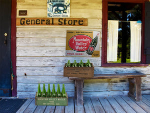 Metal signs such as this vintage Mountain Valley Spring Water advertisement were popular in the early to mid 1900s, appearing across the country at roadside gas stations and neighborhood markets.